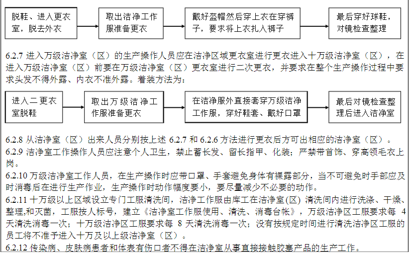 6.2.4萬級潔凈室(區(qū))工作人員(包括維修、輔助人員)應(yīng)每6個月進行衛(wèi)生和微生物學基礎(chǔ)知識、潔凈作業(yè)等方面的培訓及考核。